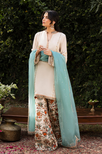 Crafted from a premium silk-blended lawn, Muraad offers a sumptuously soft and breathable feel against your skin. Tone-on-tone threadwork graces the neckline and cuffs, while reinforced seams ensure long-lasting durability. The straight-cut shirt and trousers provide a relaxed fit that flatters every silhouette.